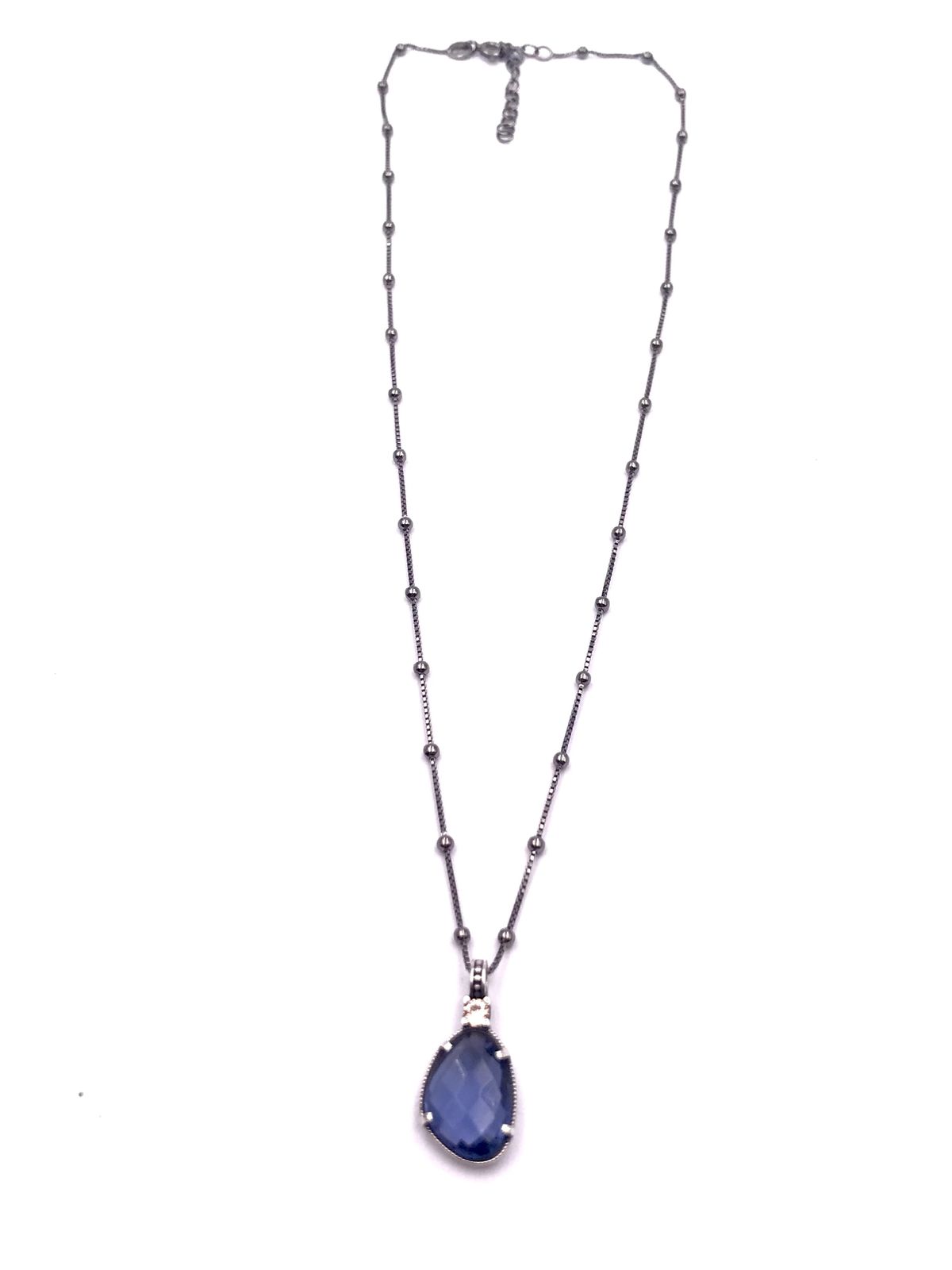Colgante fabricado artesanalmente en plata de ley envejecida, con circonita azul como central y una pequeña circonita cava sobre ella, dando mas luz al intenso azul, un toque de elegancia y distinción para tu outfit. Una cadena con detalles de bolitas oscurecida. Con posibilidad de modificaciones (consultar).