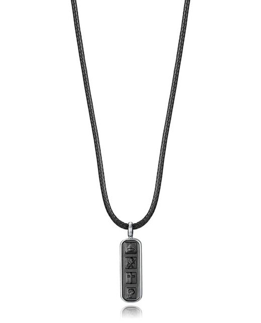 Pingente Viceroy, confeccionado em aço inoxidável com revestimento IP preto, com detalhes em relevo na placa central. Possui um cordão de couro macio com corrente ajustável para um encaixe perfeito. Este pingente é perfeito para homens que buscam um acessório que combine resistência, estilo e versatilidade, ideal para qualquer ocasião, do uso diário a eventos mais formais.