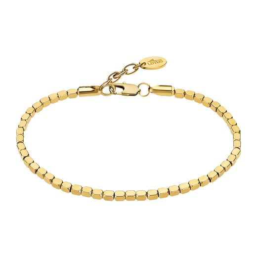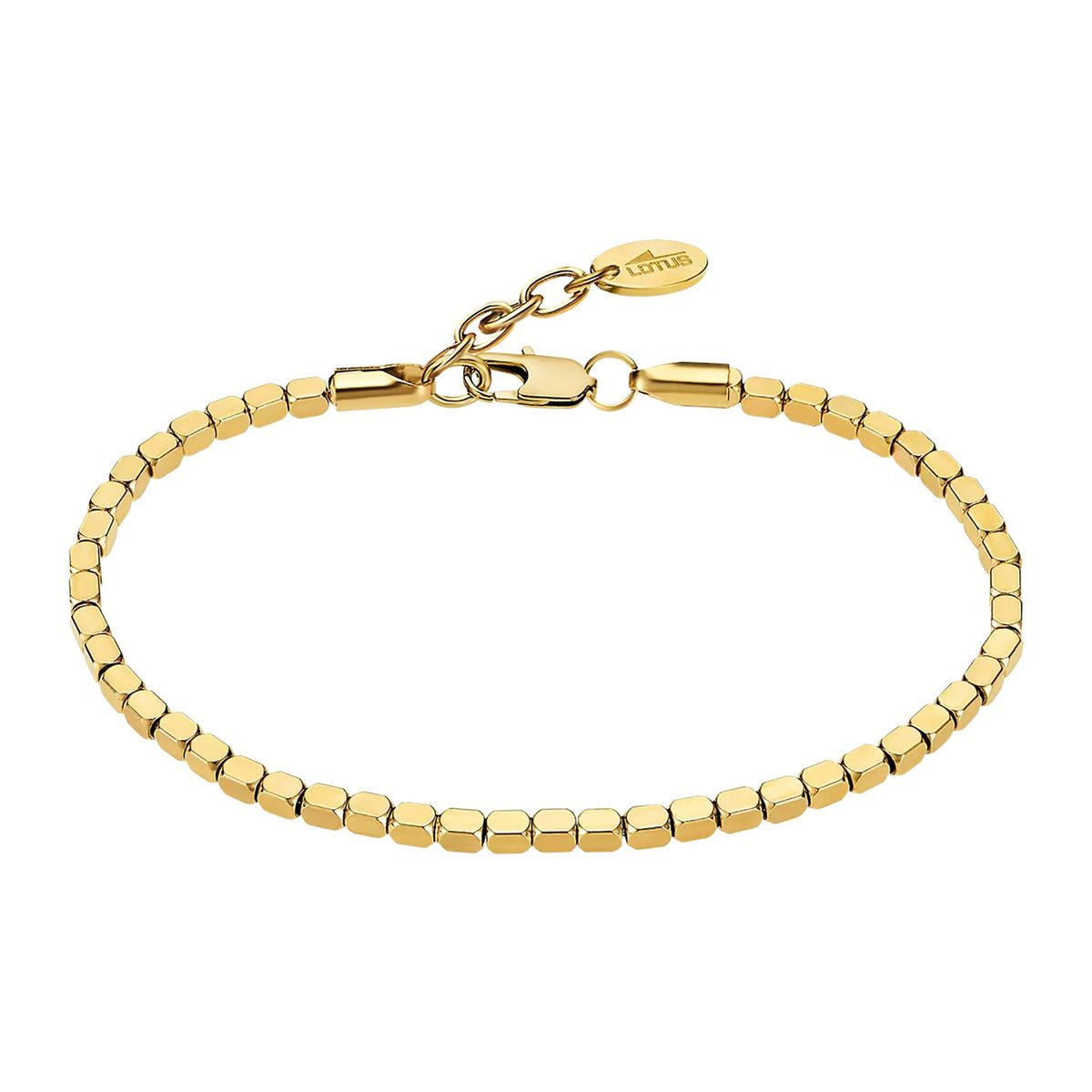 Pulseira Lotus feita de aço inoxidável durável de alta qualidade com acabamento em IP dourado. É fácil de combinar com outras pulseiras e usar, oferecendo um estilo moderno e urbano.