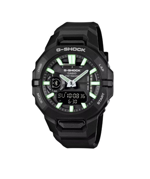 Um relógio altamente resistente a choques com diversas funções, como alarmes múltiplos, cronômetro, timer, rastreador de corrida, rastreador de atividades e sincronização Bluetooth®. Este relógio se conecta ao seu celular para ajustar sua distância via GPS e registrar suas voltas automaticamente com o Auto Lap. Feito de resina de base biológica ecológica na cor preta, a caixa de resina reforçada com fibra de carbono e a pulseira flexível moldada em peça única garantem um ajuste firme e confortável.