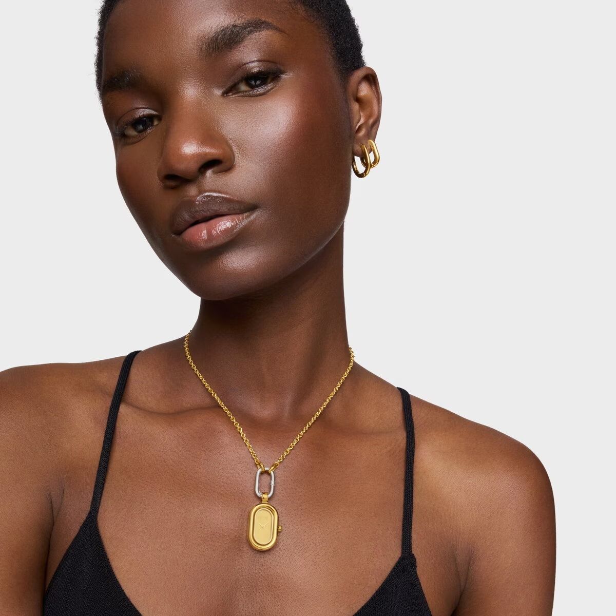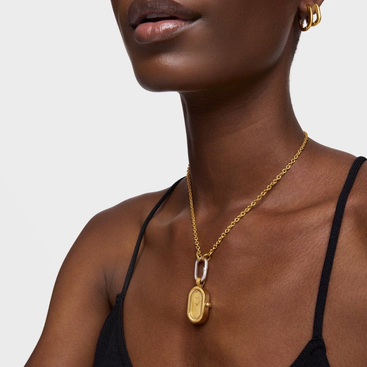 Relógio Tous Hold Oval, confeccionado em aço inoxidável banhado a ouro. Adicione um toque divertido ao seu visual com este relógio de pingente; seja diferente, seja ousado. Corrente NÃO INCLUÍDA.