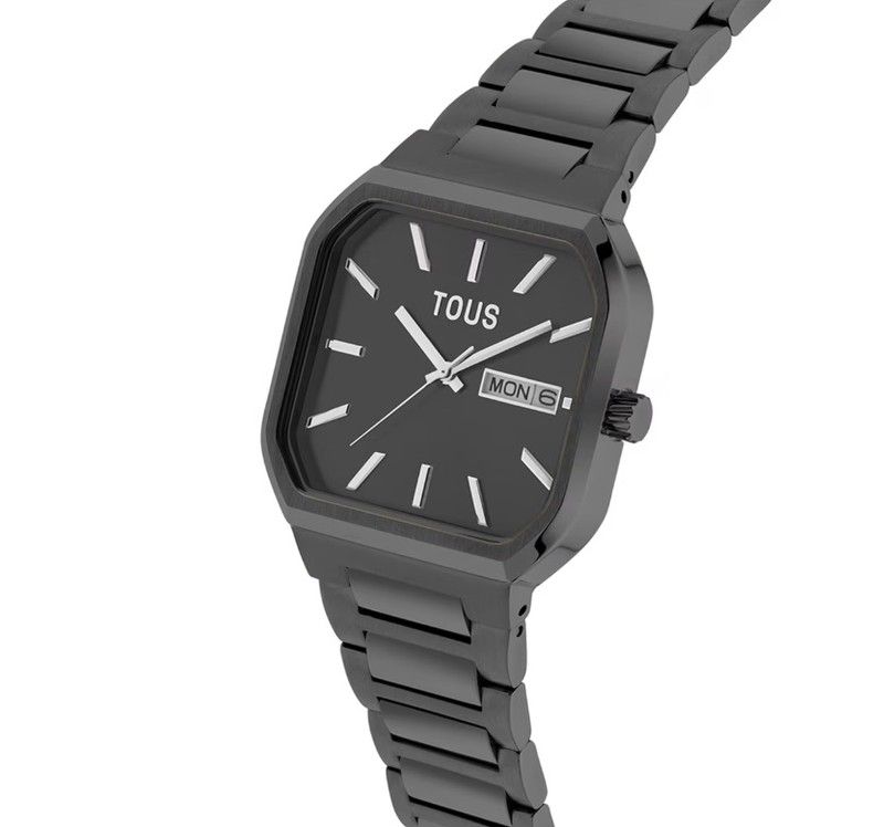 Relógio unissex Tous da coleção Lit, feito em aço inoxidável IP preto com calendário duplo às três horas, elegante e sofisticado. Uma peça única, ideal para usar em qualquer ocasião.