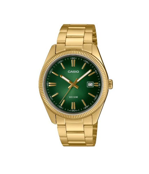 Reloj Casio Unisex MTP-1302PGC dorado con esfera verde