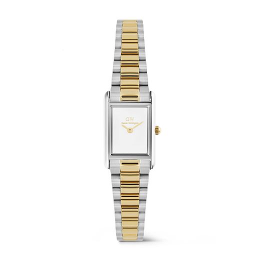 Reloj Daniel Wellington, fabricado en acero inoxidable combinado con Ip dorado, de la colección Bound. Una versión compacta del reloj rectangular, con caja delgada y una esfera blanca impecable se combinan con un brazalete de tres eslabones en dos tonos de plata y oro añade un sutil contraste y combina a la perfección con joyas de oro y plata. Un reloj elegante y sutil.
