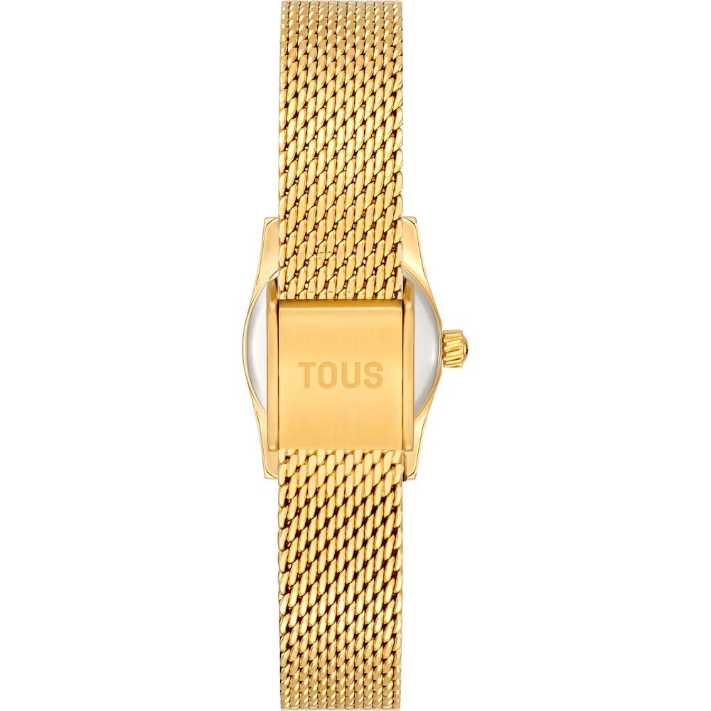 Reloj Tous de la colección Epic, fabricado en acero inoxidable Ip dorado. Brazalete de esterilla también conocida como malla milanesa. Un reloj que une la tradición joyera con las tendencias actuales, una pequeña joya que refleja personalidad y estilo. Elegante y moderna, la colección convierte cada instante en un momento icónico.