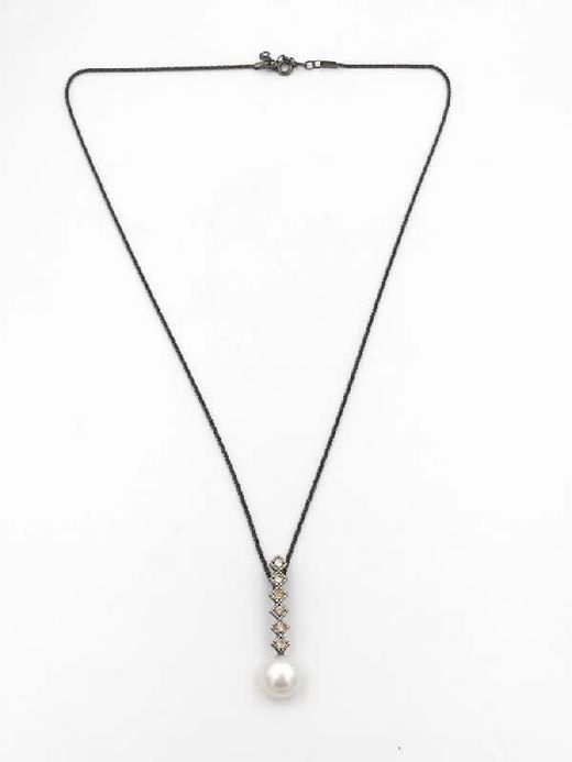 Pingente em prata com zircônias marrons e pérola cultivada. Inclui corrente de prata banhada a rutênio.